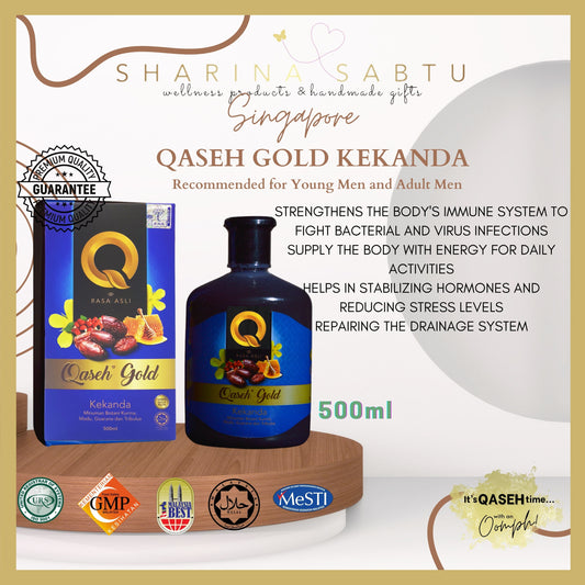 Sharina SabtuDalam Qaseh Gold Adinda/Kekanda ada gabungan makanan sunnah dan keseluruhan zat yang terkandung lebih kurang 200 jenis zat. Tidak semestinya badan menyerap semua zat yang dimakan akan diserap oleh tubuh....