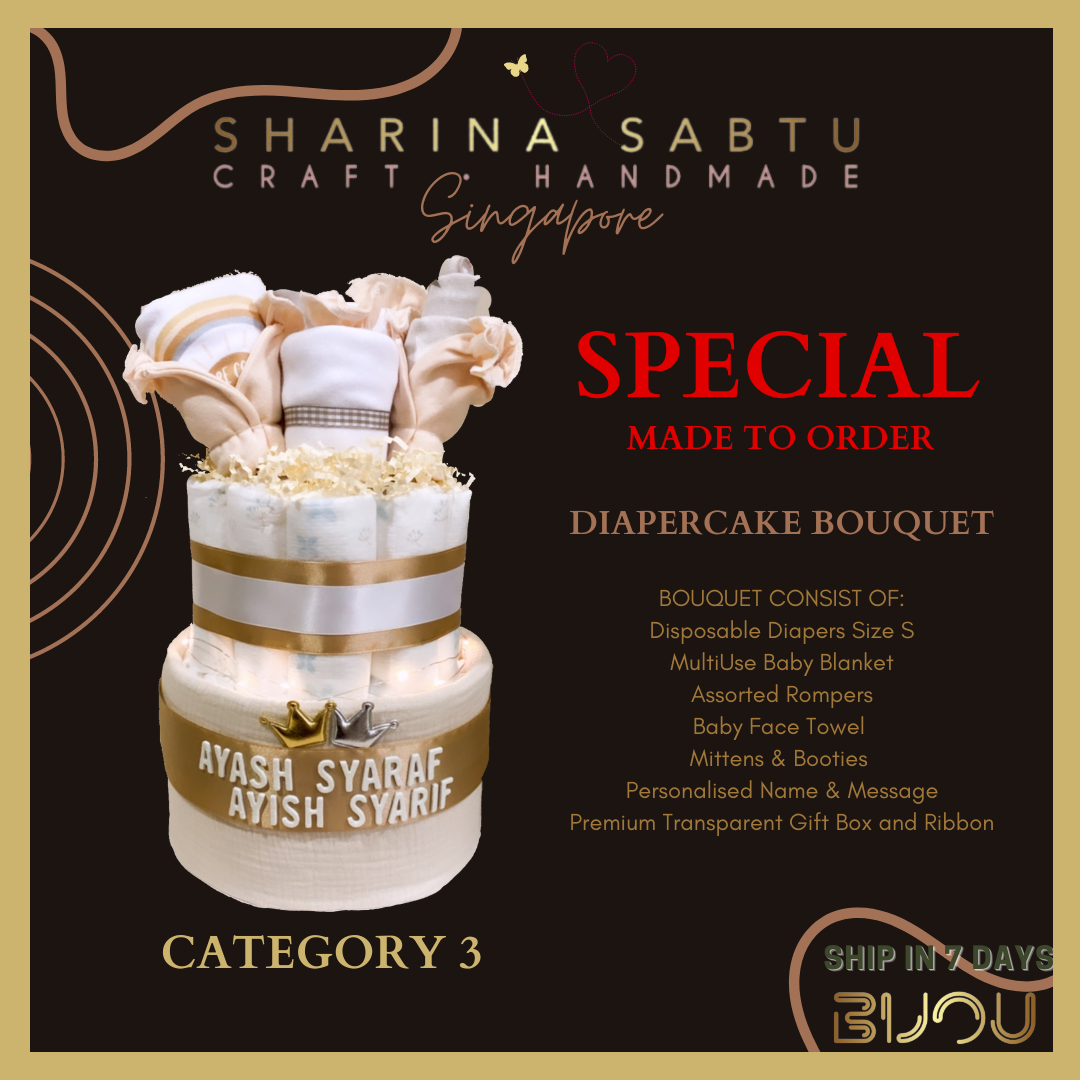 ⭐️NEWBORN - YOURS TRULY BESPOKE BABY GIFT⭐️ BEST PERSONALISED UNIQUE DIAPERCAKE/DIAPERCRAFT FOR NEWBORN (NB)