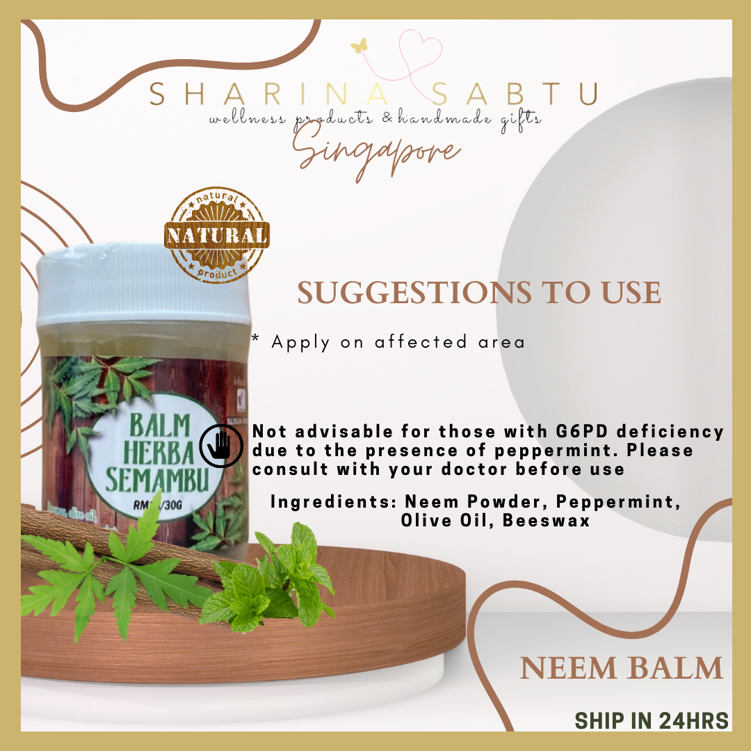 Neem Powder, Peppermint, Olive Oil, Beeswax