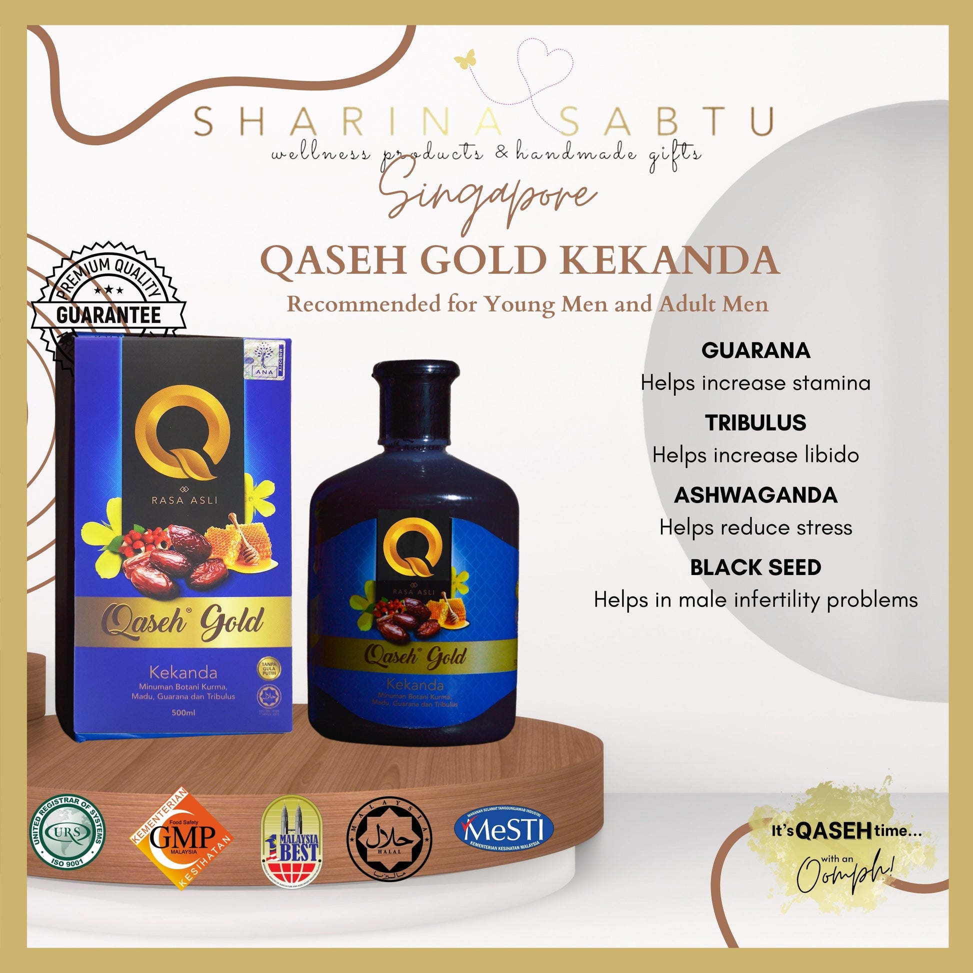 Madu, Kurma, Tribulus Terrestris, Guarana, Tiin, Minyak Habbatus Sauda, Gam Arab, Ashwaganda, Minyak Zaitun, Garam Bukit, Gingko Biloba, Sireh, Za’faran, Air, Xanthan Gum, Potassium Sorbate.