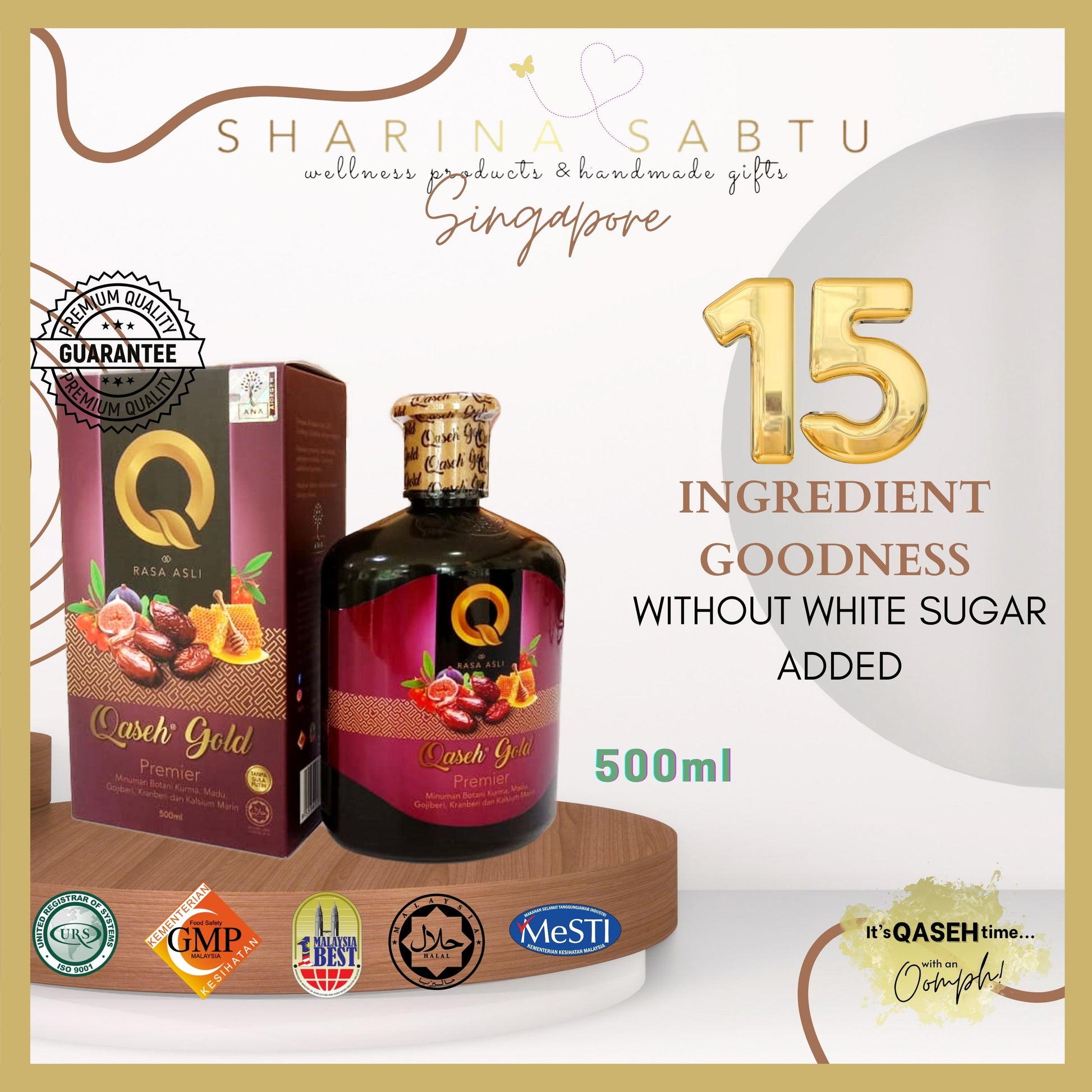 Madu, Kurma, Delima, Tiin, Roselle, Kacang Ginjal Putih, Gojiberi, Kranberi, Gam Arab, Garam Bukit, Gingko Biloba, Minyak Zaitun, Biji Anggur, Minyak Habbatus Sauda, Kalsium Marin, Za’faran, Air, Xanthan Gum, Potassium Sorbate.